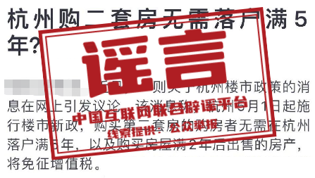 謠言:杭州購二套房無需落戶滿5年?