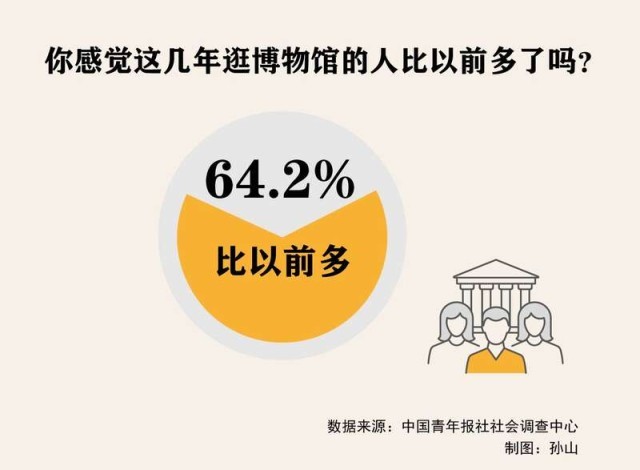 中青報社調中心的調查也顯示,超六成(64.2%)受訪者感覺這幾年逛博物館的人比以前多了。七成多(73.2%)受訪者表示去外地遊玩,會(hui) 把目的地博物館納入必到之地。