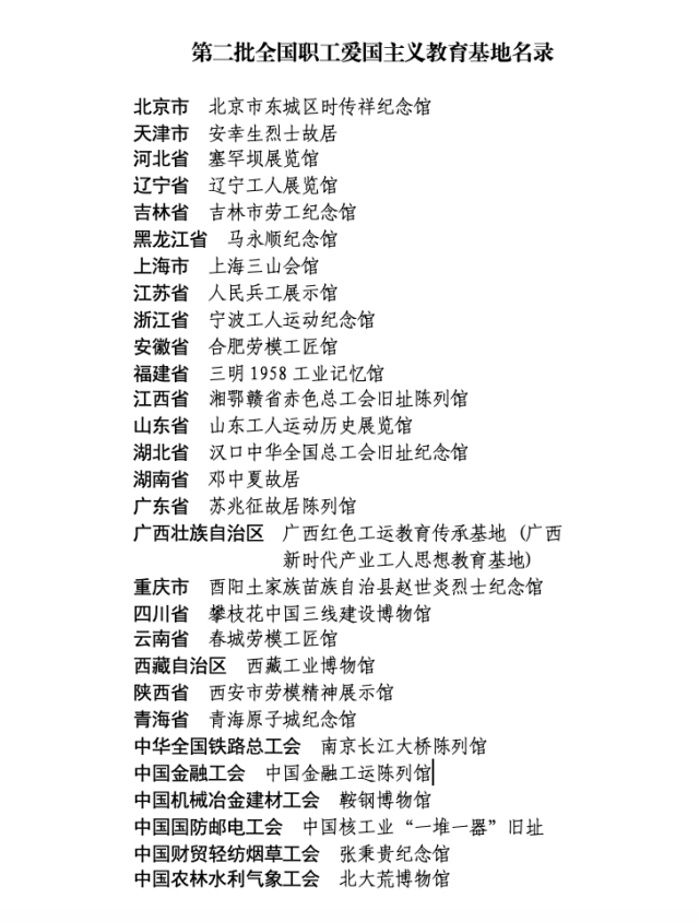 全國總工會命名第二批全國職工愛國主義教育基地