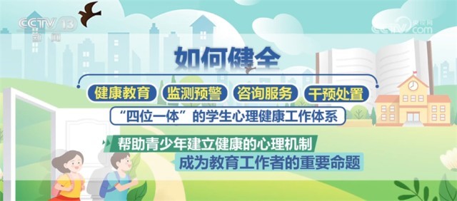 央視網消息:為(wei) 了提前發現、幹預學生心理問題,全國多地的大中小學校也在積極行動,強化心理監測預警,整合社會(hui) 資源,築牢學生心理健康“防護牆”。