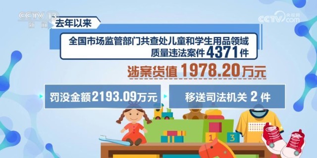2022年以來,全國市場監管部門共查處兒(er) 童和學生用品領域質量違法案件4371件,涉案貨值1978.20萬(wan) 元,罰沒金額2193.09萬(wan) 元,移送司法機關(guan) 2件。