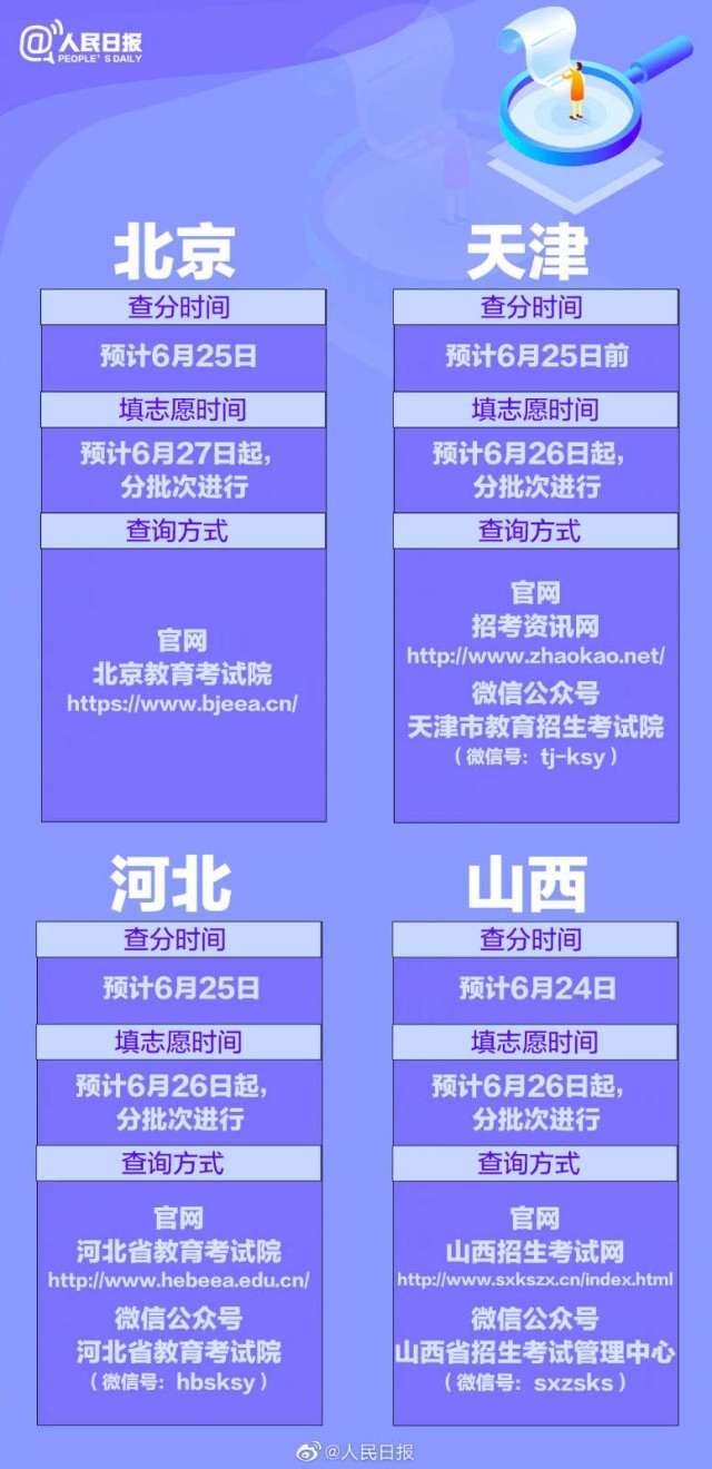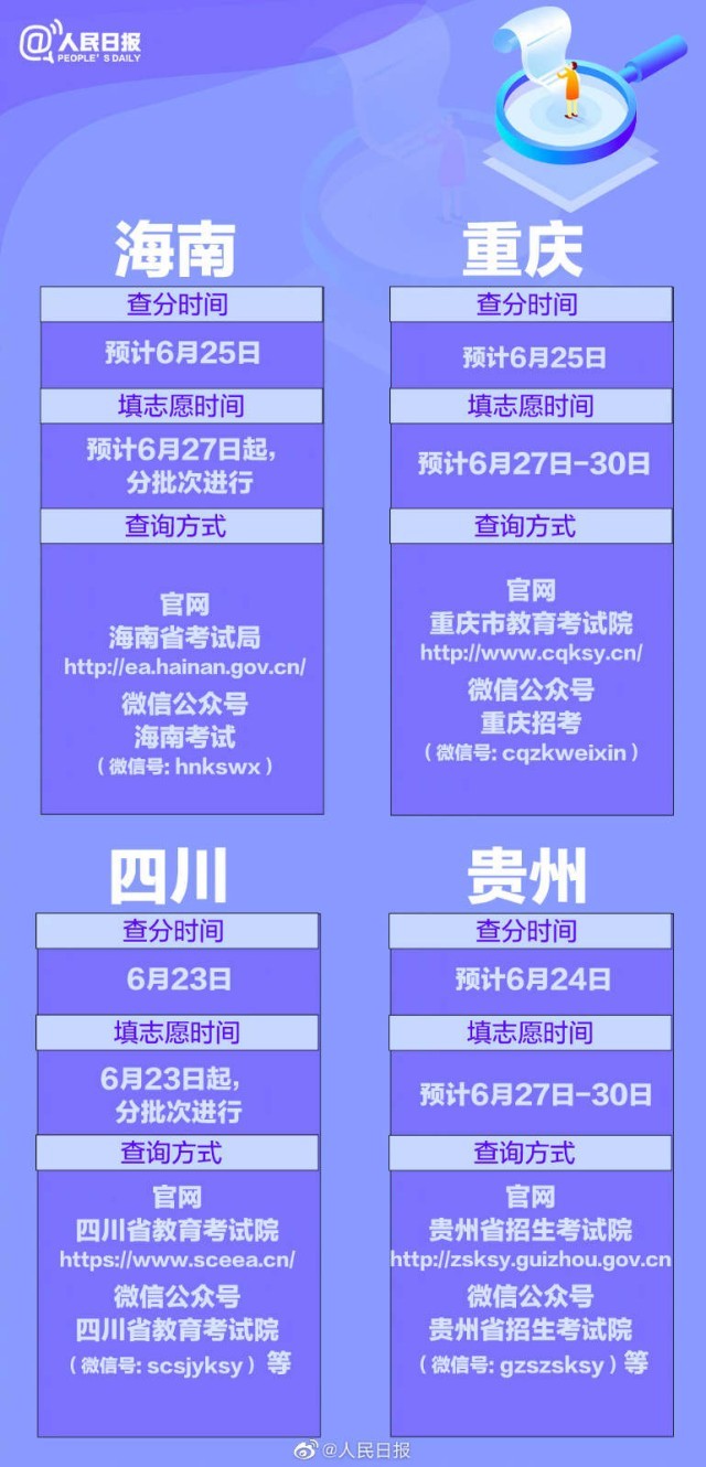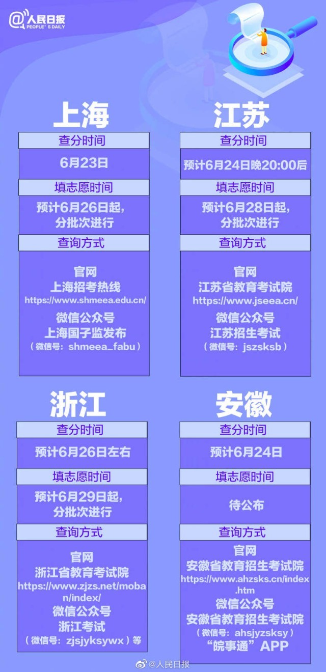 6月23日起,各地高考成績陸續公布,同時,多個(ge) 省區市的誌願填報安排也已公布。@ 1291萬(wan) 考生,你們(men) 準備好了嗎?31省份報誌願時間全匯總↓↓祝考生金榜題名,願劈波斬浪,繼續精彩!