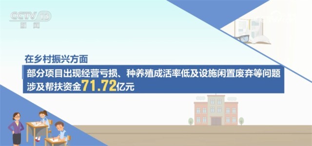 在鄉(xiang) 村振興(xing) 方麵,部分項目出現經營虧(kui) 損、種養(yang) 殖成活率低及設施閑置廢棄等問題,涉及幫扶資金71.72億(yi) 元。