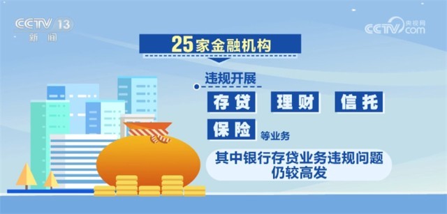 25家金融機構違規開展存貸、理財、信托、保險等業(ye) 務,其中銀行存貸業(ye) 務違規問題仍較高發。