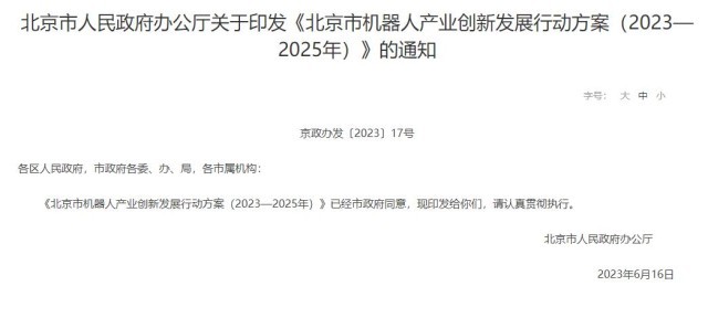 北京市機器人產(chan) 業(ye) 創新發展行動方案(2023—2025年)