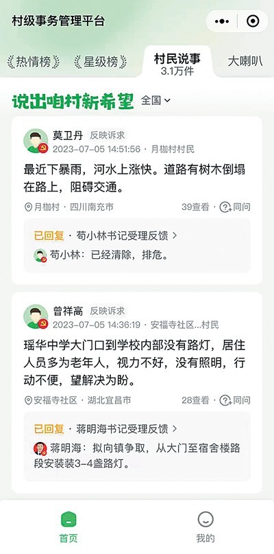 “老百姓把遇到的問題發布,我們(men) 看到後及時回複、解決(jue) ,大大提高了工作效率。”舒軍(jun) 說,他已經養(yang) 成習(xi) 慣,每天都會(hui) 看看村民在小程序說了啥事。