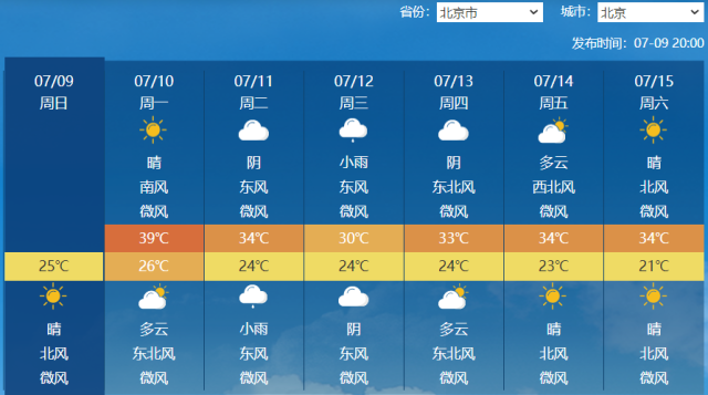 像是北京,明天最高氣溫還將在39℃,11日退出“高溫群”降至34℃,12日最高溫繼續下降至30℃。