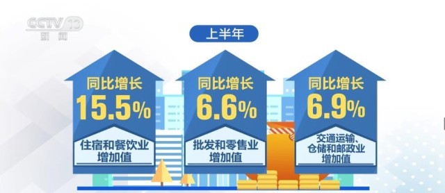 2023年上半年,我國服務業(ye) 增加值同比增長6.4%,接觸型服務業(ye) 較快增長。上半年,住宿和餐飲業(ye) 、批發和零售業(ye) 、交通運輸、倉(cang) 儲(chu) 和郵政業(ye) 增加值同比分別增長15.5%、6.6%和6.9%。