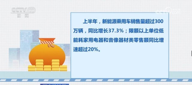 隨著居民消費理念轉變,促進消費提質升級政策顯效,消費新動能持續增強。上半年,新能源乘用車銷售量超過300萬(wan) 輛,同比增長37.3%;限額以上單位低能耗家用電器和音像器材類零售額同比增速超過20%。