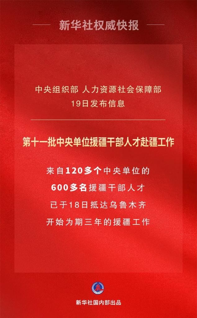 7月18日,中央組織部、人力資源社會(hui) 保障部有關(guan) 負責同誌帶隊,送第十一批中央單位援疆幹部人才抵達烏(wu) 魯木齊,開始了為(wei) 期三年的援疆工作。