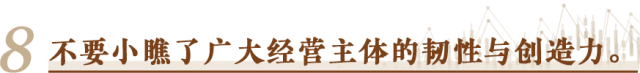 書(shu) 寫(xie) 這份“中國經濟半年報”的,不光是宏觀政策的製定者,還有億(yi) 萬(wan) 經營主體(ti) 。它們(men) 在市場經濟風風雨雨中摸爬滾打過來,承載著就業(ye) ,創造著財富,推動著創新,體(ti) 現著社會(hui) 責任。無論是服務業(ye) 還是製造業(ye) ,無論是傳(chuan) 統產(chan) 業(ye) 還是戰略性新興(xing) 產(chan) 業(ye) ,哪一行哪一業(ye) ,缺得了充滿活力的經營主體(ti) ?看宏觀政策是否有效,標準之一就是看能否持續廣泛激發經營主體(ti) 的活力。一句話,任何時候都不要小瞧了廣大經營主體(ti) 的韌性與(yu) 創造力,尊重他們(men) ,幫助他們(men) ,相信他們(men) 。