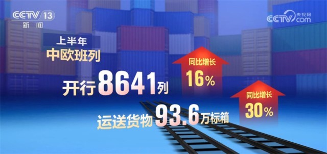 上半年,中歐班列開行8641列、運送貨物93.6萬(wan) 標箱,同比分別增長16%、30%。