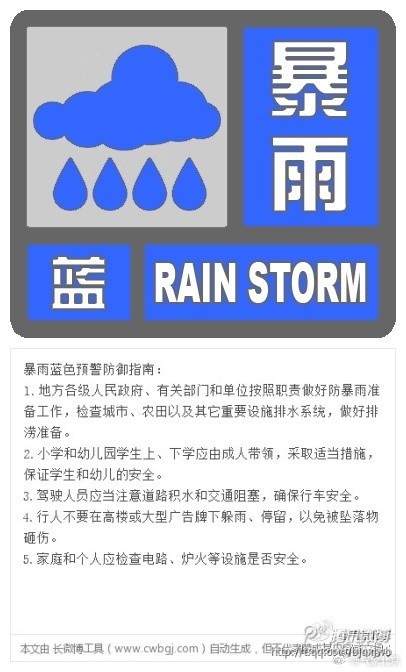 北京市發布暴雨藍色預警