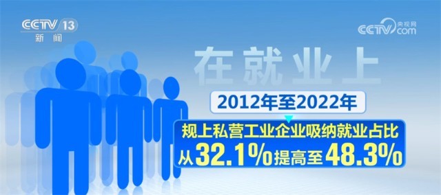在稅收上,2012年至2021年,民企占比從(cong) 48%提升至59.6%。在就業(ye) 上,2012年至2022年,規上私營工業(ye) 企業(ye) 吸納就業(ye) 占比從(cong) 32.1%提高至48.3%。在數量上,2012年至2022年,民企數量占比從(cong) 79.4%增長到93.3%。在外貿上,民企從(cong) 2019年起成為(wei) 第一大外貿主體(ti) ,2022年占比達50.9%。