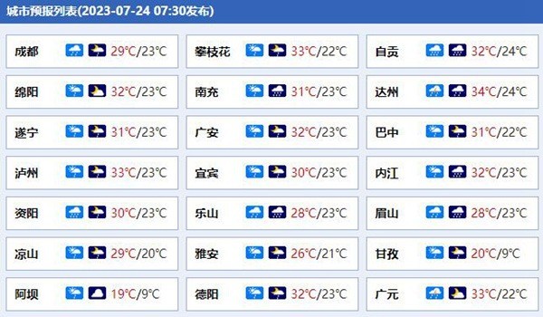 今明天(7月24日至25日),四川降雨範圍擴大,雨勢增強,其中今天成都、雅安、樂(le) 山等多地有大雨,局地暴雨,需注意防範。