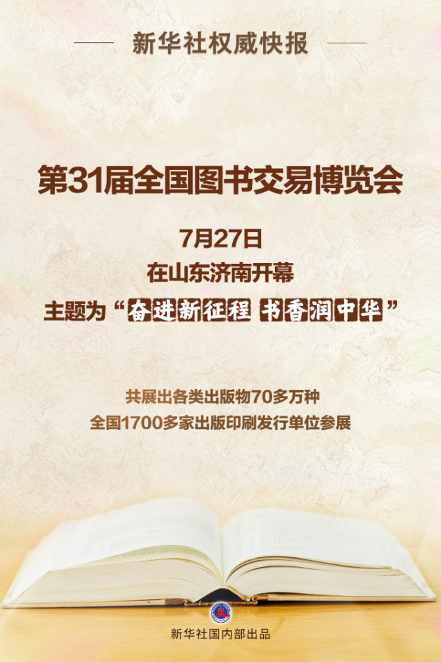 第31屆全國圖書(shu) 交易博覽會(hui) 7月27日在山東(dong) 濟南開幕