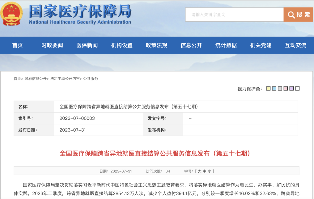 此外,住院費用跨省直接結算規模進一步增長。截至2023年二季度末,全國住院費用跨省聯網定點醫療機構達7.44萬(wan) 家,較一季度末增長0.69萬(wan) 家。2023年二季度,住院費用跨省直接結算282.57萬(wan) 人次。