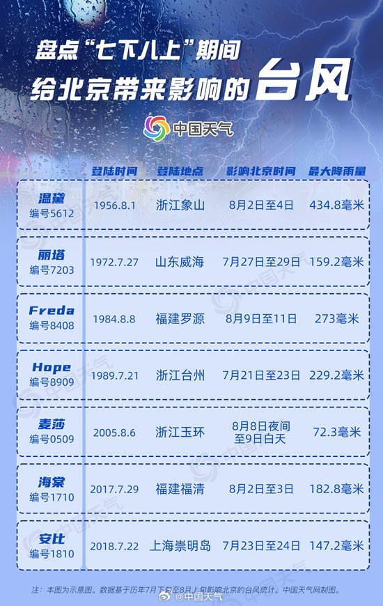 本次極端降水過程中,台風“杜蘇芮”的殘餘(yu) 環流北上是其中一個(ge) 重要的原因。曆史上北京也曾多次受到台風及其減弱後的低壓影響,出現較強降雨。例如2017年第10號台風“海棠”和2018年第10號台風“安比”給北京帶來的最大降雨量都超過了100毫米,更早的1956年第12號台風“溫黛”導致的最大降雨量更是超過400毫米。