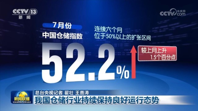 中國物流與(yu) 采購聯合會(hui) 2日公布,今年7月份,中國倉(cang) 儲(chu) 指數為(wei) 52.2%,連續六個(ge) 月位於(yu) 50%以上的擴張區間。數據顯示,倉(cang) 儲(chu) 企業(ye) 生產(chan) 經營活動活躍,業(ye) 務量明顯增長,企業(ye) 對市場前景保持樂(le) 觀。