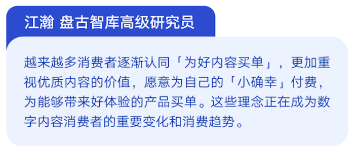 付費用戶數的持續提升,與(yu) 版權環境向好密切相關(guan) 。盤古智庫高級研究員江瀚指出,越來越多的消費者逐漸認同了為(wei) 好內(nei) 容買(mai) 單的思路,也更加重視優(you) 質內(nei) 容的價(jia) 值,願意為(wei) 自己的“小確幸”付費,為(wei) 能夠給自己帶來好體(ti) 驗的產(chan) 品買(mai) 單,這一思路正在成為(wei) 重要的消費趨勢。對此,TME在財報中也表示,公司在多年的努力過程中看到,用戶支持正版的意識越來越強。