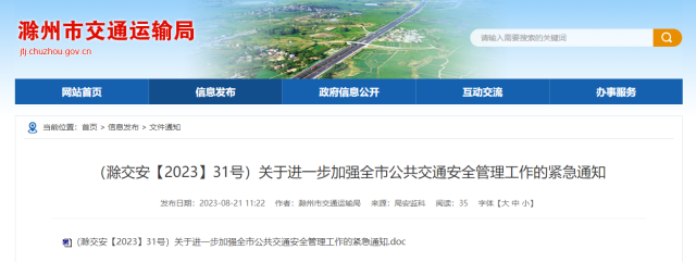8月20日中午,來安城鄉(xiang) 公交有限公司一輛公交車在南京林場附近突然起火,造成2人死亡、5人受傷(shang) 。為(wei) 深刻吸取事故教訓,確保公共交通安全,切實保障人民群眾(zhong) 生命財產(chan) 安全,現就加強全市公共交通安全管理工作緊急通知如下: