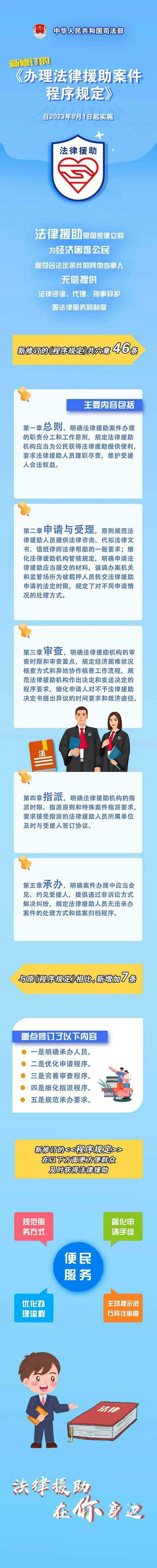 日前,司法部公布修訂後的《辦理法律援助案件程序規定》,自2023年9月1日起施行。今天,司法部有關(guan) 負責人就《程序規定》修訂有關(guan) 問題回答了記者提問。