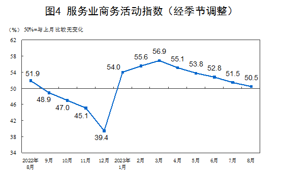 8月份,非製造業(ye) 商務活動指數為(wei) 51.0%,比上月下降0.5個(ge) 百分點,仍高於(yu) 臨(lin) 界點,非製造業(ye) 持續擴張。