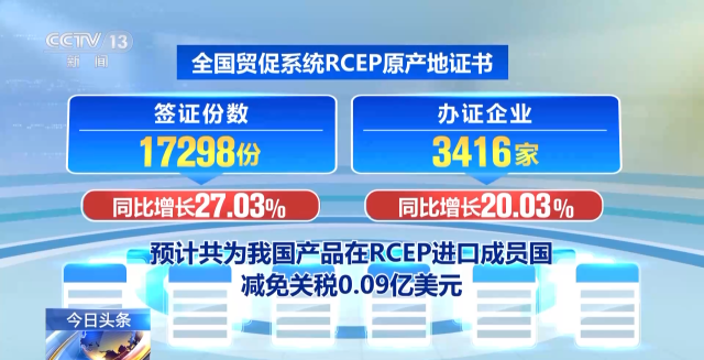 中國貿促會(hui) 8月30日介紹:今年7月份,全國貿促係統累計簽發原產(chan) 地證書(shu) 等各類證書(shu) 54.62萬(wan) 份,較上年同比增長12.82%。全國貿促係統RCEP原產(chan) 地證書(shu) 簽證份數為(wei) 17298份,同比增長27.03%;辦證企業(ye) 3416家,同比增長20.03%,預計共為(wei) 我國產(chan) 品在RCEP進口成員國減免關(guan) 稅0.09億(yi) 美元。