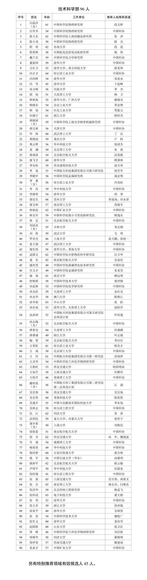 583人!2023年中國科學院院士增選有效候選人名單公布