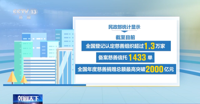 民政部統計顯示,截至目前,全國登記認定慈善組織超過1.3萬(wan) 家;備案慈善信托1433單;全國年度慈善捐贈總額最高突破2000億(yi) 元。