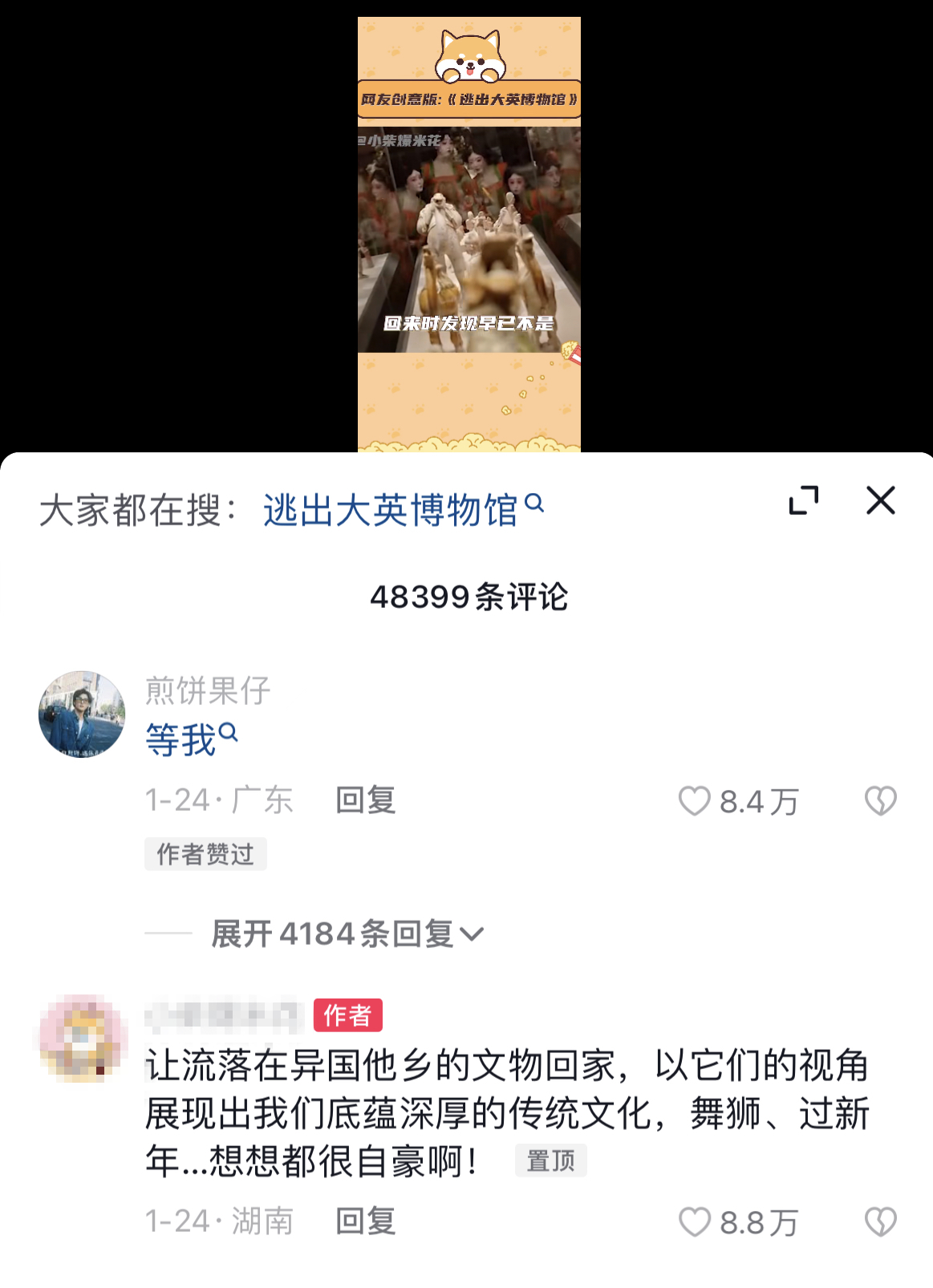 《逃出大英博物館》由兩(liang) 位90後自媒體(ti) 人“煎餅果仔”和“夏天妹妹噢”共同創作。短片上線前期,正逢大英博物館被多個(ge) 國家要求歸還本國文物,戳中了每一個(ge) 中國人強烈期盼流失海外文物早日回家的內(nei) 心。