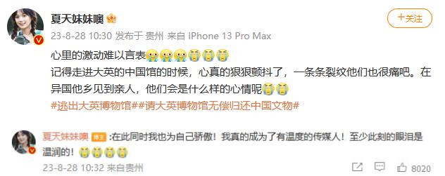 預告片發布後,up主“夏天妹妹噢”難掩激動之情,她清楚地記得自己走進大英博物館的中國館時,心真的狠狠顫抖了。“一條條裂紋他們(men) 也很痛吧,在異國他鄉(xiang) 見到親(qin) 人,他們(men) 會(hui) 是什麽(me) 樣的心情呢?”同時,她也為(wei) 自己真正成為(wei) 了有溫度的傳(chuan) 媒人而驕傲。