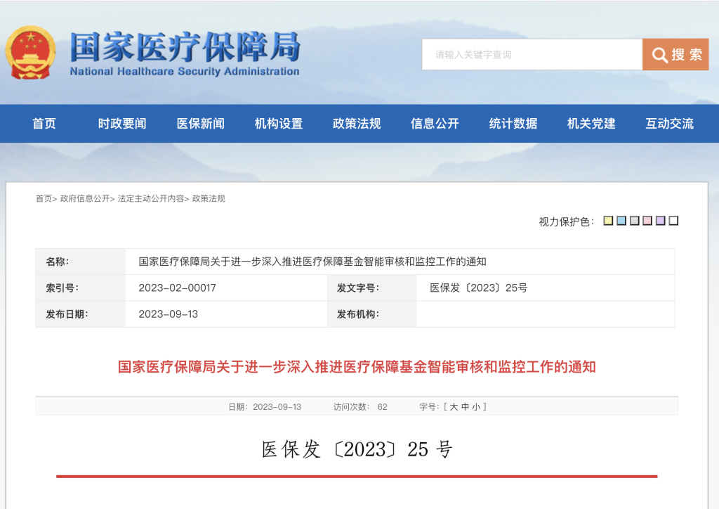 國家醫保局發文加快推進醫保基金智能審核和監管