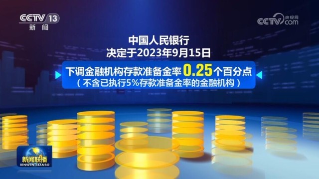 為(wei) 鞏固經濟回升向好基礎,保持流動性合理充裕,中國人民銀行決(jue) 定於(yu) 明天(9月15日)下調金融機構存款準備金率0.25個(ge) 百分點(不含已執行5%存款準備金率的金融機構)。本次下調預計將釋放中長期流動性超過5000億(yi) 元,本次下調後,金融機構加權平均存款準備金率約為(wei) 7.4%。