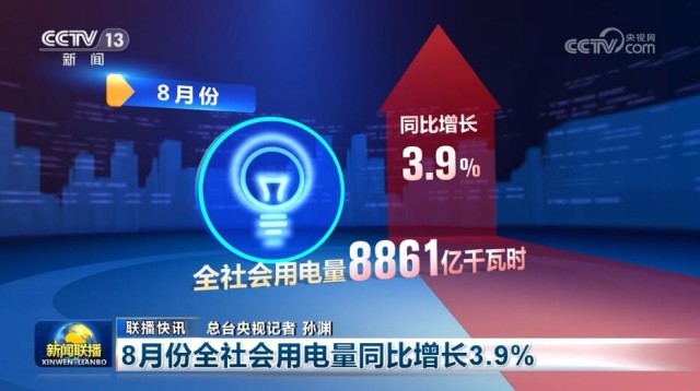 國家能源局今天發布用電量數據顯示,8月份,全社會(hui) 用電量8861億(yi) 千瓦時,同比增長3.9%。第一、二、三產(chan) 業(ye) 用電量均呈現增長態勢,同比分別增長8.6%、7.6%和6.6%,經濟運行繼續延續回升向好態勢。