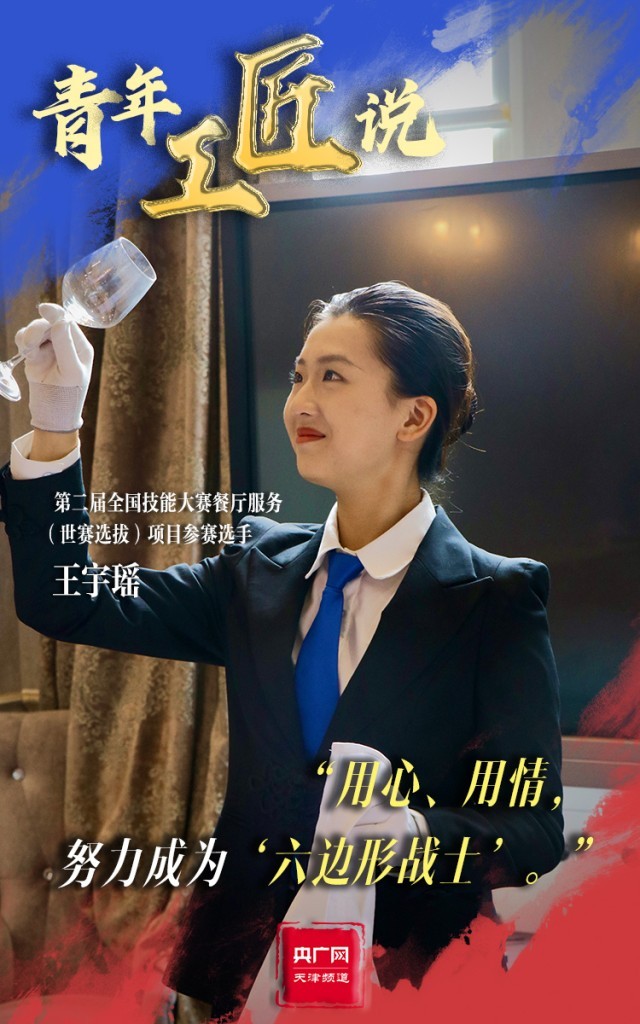 370餘(yu) 個(ge) 考核點,對於(yu) 第二屆全國技能大賽餐廳服務(世賽選拔)項目參賽選手王宇瑤來說,有著巨大的考驗。但麵對困難,王宇瑤始終保持微笑,在老師的指導下練習(xi) 調製雞尾酒、餐巾折花、餐桌擺盤成百上千次。整齊的著裝、得體(ti) 大方的儀(yi) 容、神采奕奕的狀態,一顰一笑皆為(wei) 王宇瑤的細心巧思。“我將以此次比賽為(wei) 契機,努力磨煉技藝,成為(wei) 一名全麵發展的‘六邊形戰士’。”王宇瑤笑著說道。