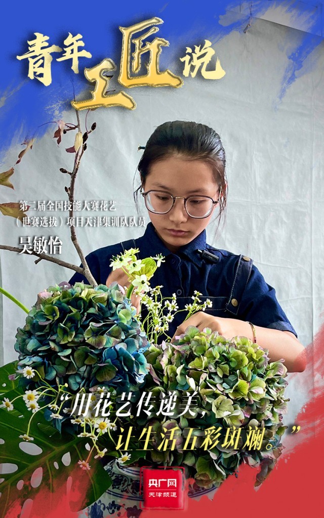 青春,是以工匠精神築就美好生活的底色。走進位於(yu) 天津農(nong) 學院花藝(世賽選拔)項目的集訓現場,生機盎然、芬芳馥鬱,天津集訓隊隊員吳敏怡正在挑選花材和花器,為(wei) 每一件作品賦予一番獨特的意境。從(cong) 2023年5月以來,吳敏怡每天要與(yu) 花相伴12個(ge) 小時,在審美及技術水平上的提高也讓她很有成就感。對於(yu) 本次比賽,她也充滿期待:“我的目標是起碼能拿一個(ge) 優(you) 勝獎,也是為(wei) 了突破自己,讓自己的花藝技術更上一層樓。”她說,她也將用花藝傳(chuan) 遞生活中的美,讓生活五彩斑斕。