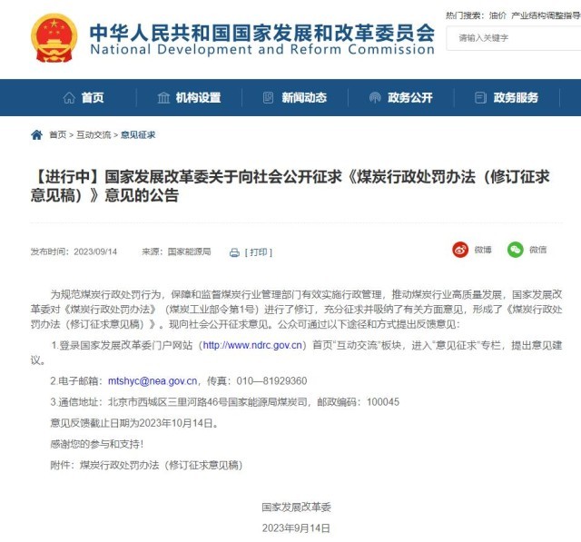 附件:煤炭行政處罰辦法(修訂征求意見稿)