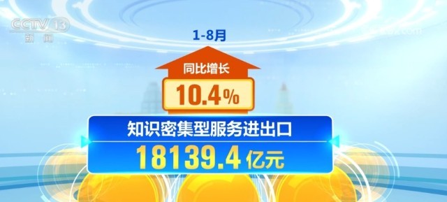 知識密集型服務貿易占比提升。1—8月,知識密集型服務進出口18139.4億(yi) 元,同比增長10.4%,占服務進出口總額的比重達42.6%,較上年同期提升0.9個(ge) 百分點。知識密集型服務出口10513.6億(yi) 元,增長13.1%,知識密集型服務進口7625.8億(yi) 元,增長6.9%。
