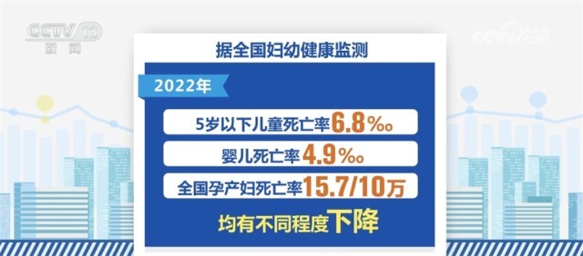在婦幼健康方麵,2022年我國孕產(chan) 婦產(chan) 前檢查率97.9%,產(chan) 後訪視率96.5%。與(yu) 上年比較,產(chan) 前檢查率和產(chan) 後訪視率均有提高。2022年全國住院分娩率為(wei) 99.94%,基本實現全部住院分娩。據全國婦幼健康監測,2022年,我國5歲以下兒(er) 童死亡率6.8‰,嬰兒(er) 死亡率4.9‰,全國孕產(chan) 婦死亡率為(wei) 15.7/10萬(wan) ,均有不同程度下降。