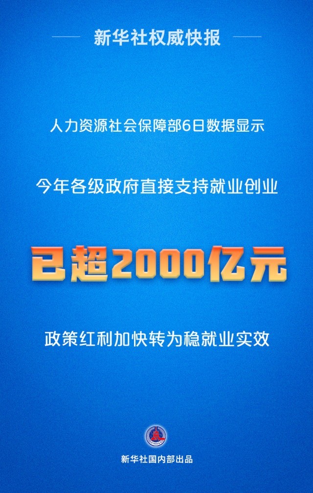 直接支持就業(ye) 創業(ye) 已超過2000億(yi) 元