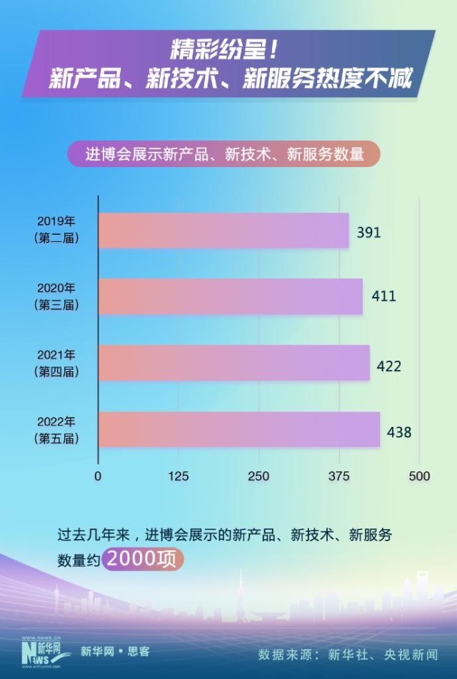 每年進博會(hui) ,各種新產(chan) 品、新技術、新服務的亮相總能吸引參會(hui) 者的眼球。數據顯示,過去幾年來,進博會(hui) 展示的新產(chan) 品、新技術、新服務數量約2000項,曆屆的數量呈逐年遞增的態勢。另一方麵,參展產(chan) 品、技術、服務不斷迭代升級,多種先進醫療器械、創新藥、能源低碳設備、智能工業(ye) 裝備、新能源汽車、高科技美妝產(chan) 品、高品質食品等也在本屆進博會(hui) 上進行全球首發、亞(ya) 洲首秀、中國首展。