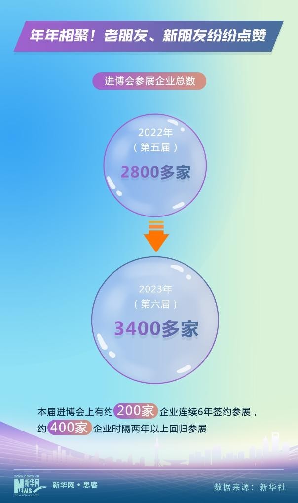 進博會(hui) 這個(ge) 充滿機遇的舞台迎接了一批又一批參展企業(ye) 。據悉,本屆進博會(hui) 上,超過3400家參展企業(ye) 在昵稱為(wei) “四葉草”的國家會(hui) 展中心(上海)亮相,大大超過了上屆2800多家的規模。“朋友圈”不斷擴大的同時,一些“老夥(huo) 伴”對進博會(hui) 興(xing) 趣不減。數據統計顯示,約200家企業(ye) 連續6年簽約參展,約400家企業(ye) 時隔兩(liang) 年以上回歸參展,再次續寫(xie) 它們(men) 的“進博緣分”。