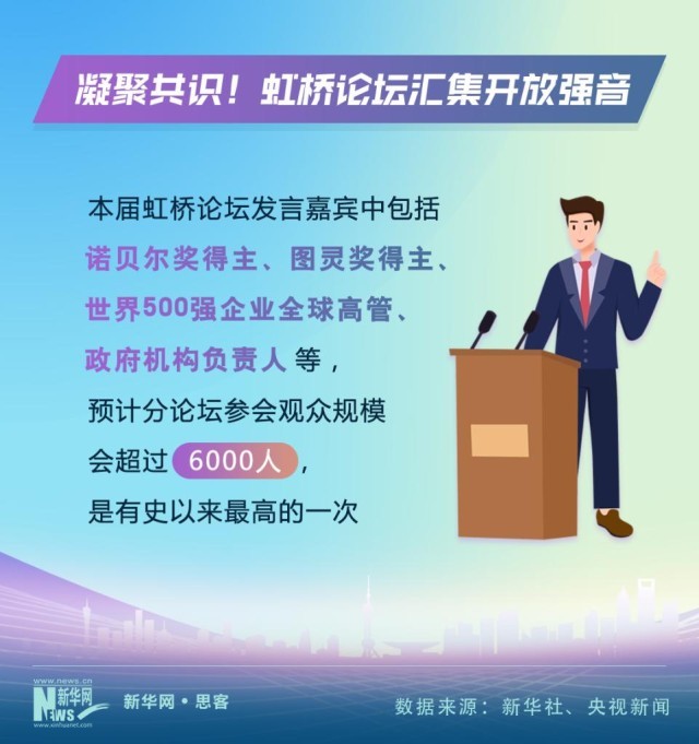 虹橋國際經濟論壇是中國國際進口博覽會(hui) 的重要組成部分。隨著進博會(hui) 的“朋友圈”越來越大,虹橋論壇的影響力也不斷提升。今年的論壇以“攜手促發展,開放贏未來”為(wei) 主題,發言嘉賓中包括了諾貝爾獎得主、圖靈獎得主、世界500強企業(ye) 全球高管、政府機構負責人等等,預計分論壇參會(hui) 觀眾(zhong) 規模也會(hui) 超過6000人,是有史以來最高的一次。