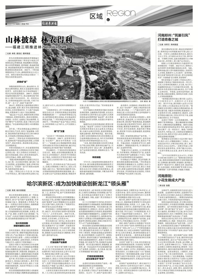 “首張林票發行、首個(ge) 全國林業(ye) 改革發展綜合試點市、首創國有林場差異化績效管理激勵機製……一係列改革舉(ju) 措先行先試,始終緊扣實現生態效益、社會(hui) 效益和百姓收益共贏。”三明市林業(ye) 局局長陳平說,2022年,三明市林業(ye) 產(chan) 業(ye) 總產(chan) 值達1258億(yi) 元,農(nong) 民涉林收入達7107元,占可支配收入的30.6%。