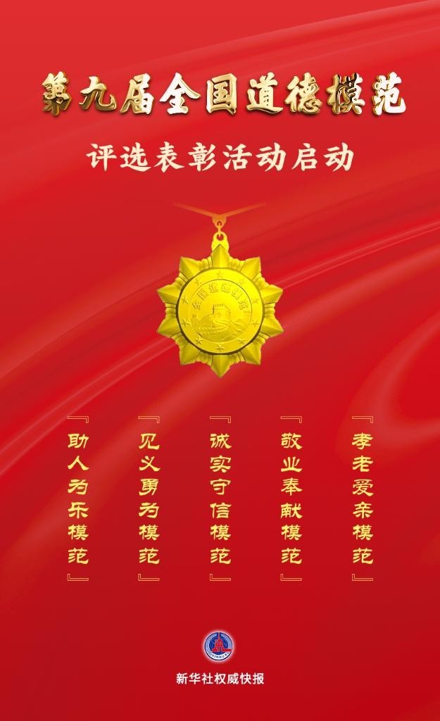 記者11月19日從(cong) 中央精神文明建設辦公室獲悉,中央宣傳(chuan) 部、中央精神文明建設辦公室等6部門近日啟動第九屆全國道德模範評選表彰。