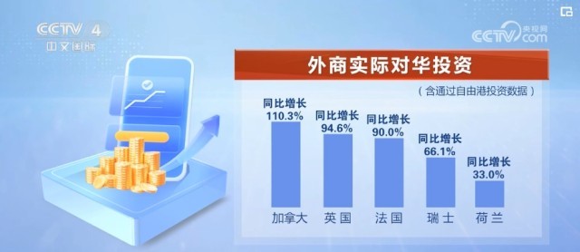 盡管部分指標出現波動,但外商來華投資熱度不減。加拿大、英國、法國、瑞士、荷蘭(lan) 實際對華投資同比分別增長110.3%、94.6%、90%、66.1%、33%。