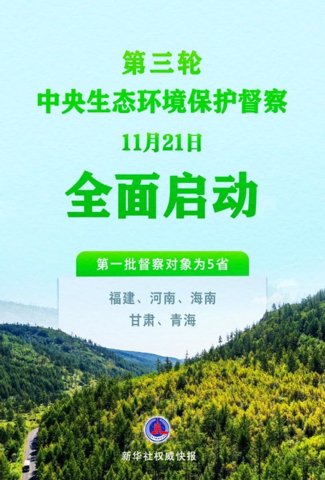 根據《中央生態環境保護督察工作規定》,經黨(dang) 中央、國務院批準,第三輪中央生態環境保護督察於(yu) 11月21日全麵啟動。