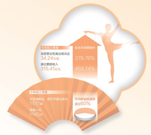 今年前三季度,全國營業性演出場次、票房收入同比大幅增長 演出市場 供需兩旺