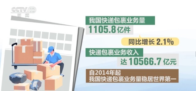 我國快遞包裹業務量同比增長2.1% 穩居世界第一
